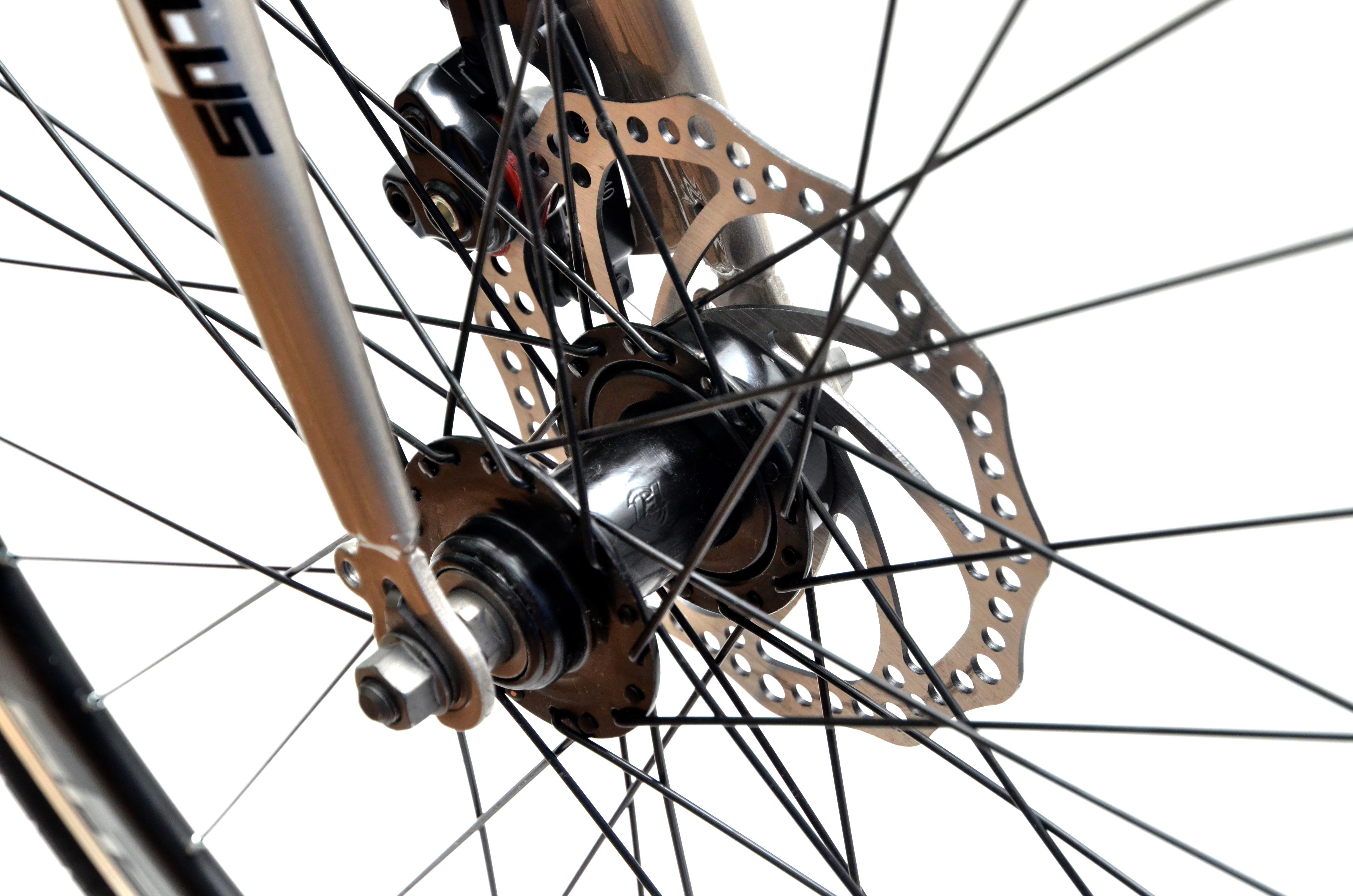 Xe được trang bị khung nhôm siêu nhẹ, phủ sơn tĩnh điện bền màu, giúp tăng độ bền và thẩm mỹ. Thiết kế cáp âm khung tạo sự gọn gàng, tinh tế, kết hợp với hệ thống phanh đĩa an toàn, đảm bảo kiểm soát tốt trong mọi điều kiện. Đặc biệt, bộ truyền động SHIMANO 3x7 tốc độ mang lại trải nghiệm lái mượt mà, ổn định trên mọi địa hình và tốc độ.